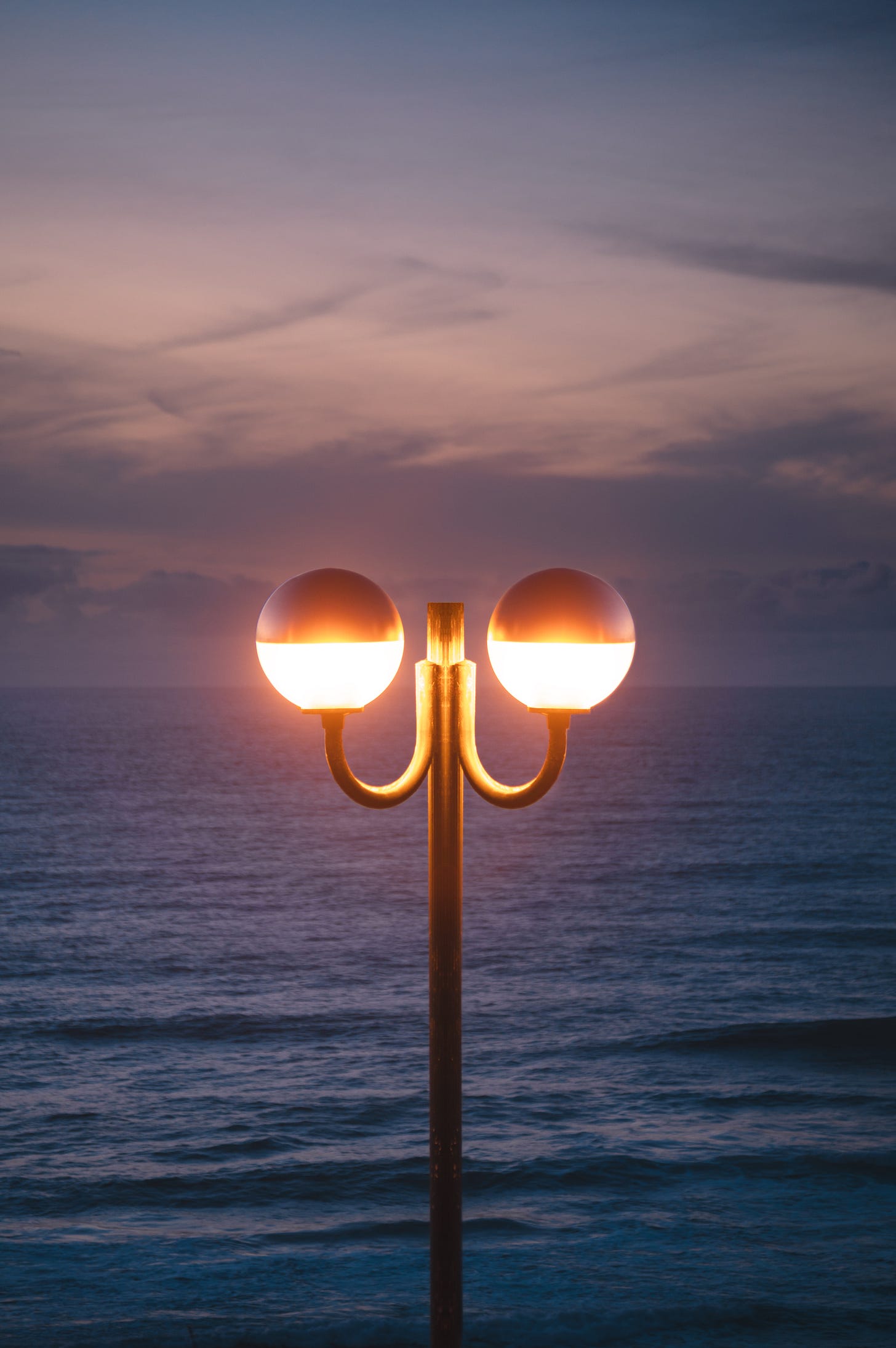 Street Lamp V. 4 (pictured above) exemplifies the vapor-wave aesthetics sometimes found in Márcia Simões photography. Through this photography, she captures the perfect timing of pre-dusk as the street lamps just turn on against the backdrop of a shoreline in the distance. We do not see the beach, indicating an elevated capturing. The ocean becomes illuminated by the pinkish and red tints in the atmosphere of the air and the setting of the sun and the street lamp perfectly summarized and compliments this frozen moment in time.