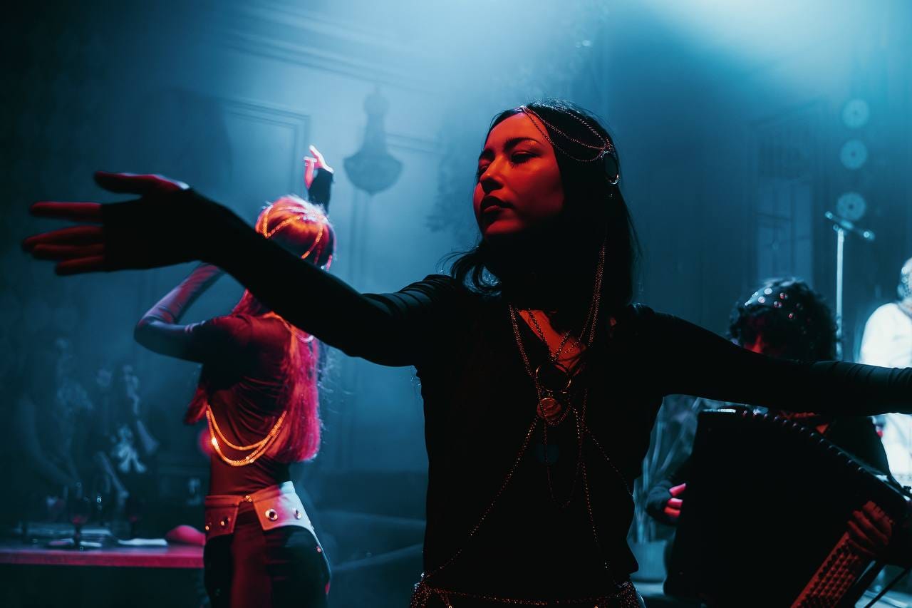 The photography and films of Nastas’ya Kydryashova typically focus on the folk customs and arts of the Chuvash people, an ethnic group who mostly reside in Chuvashia republic of Russia. Shot with an arthouse documentary style, Nastas’ya Kydryashova captures the evocative folk dances, tribal body and face markings, as well as the landscape of the Chuvash. These traditional folk dances captured in the film stills and photography contained with the article may remind the viewer of contemporary dance which highlight sensuality and emotive motions. The figures, captured in traditional tribal dress, have a deeply expressive quality based in rich history because the Chuvash people are descendants of the ancient Volga Bulgars, a civilization based on semi-nomadic warrior tribes residing within the Pontic–Caspian steppe between the 5th and 7th century. In these images, the viewer will find not so much figures as fictional actors, but an artistic documentary capturing the poetic musings of these noble people.